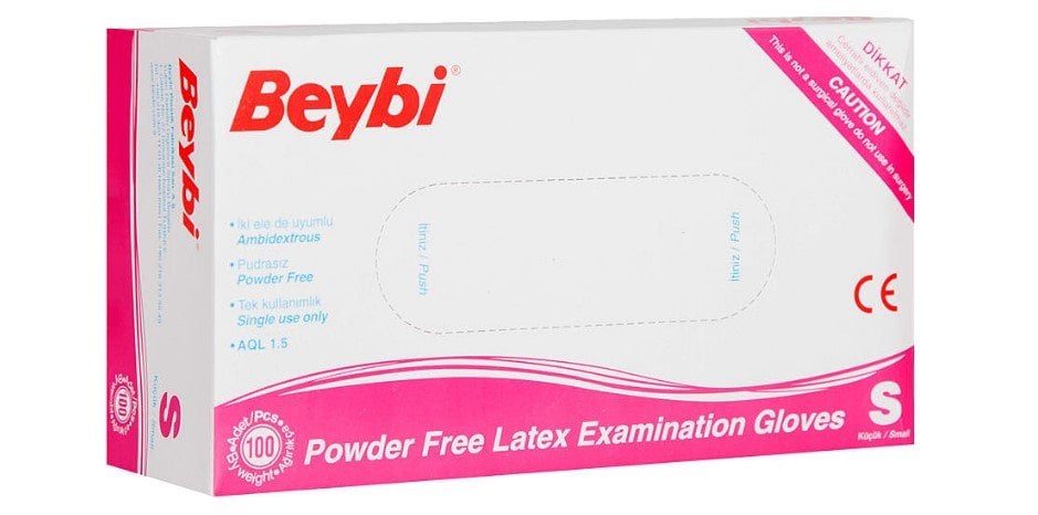 Beybi Latex Muayene Eldiveni Pudrasız S 100'lü